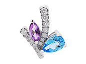 18KW BLUE TOPAZ PINK AMETHYST DIAMOND PENDANT